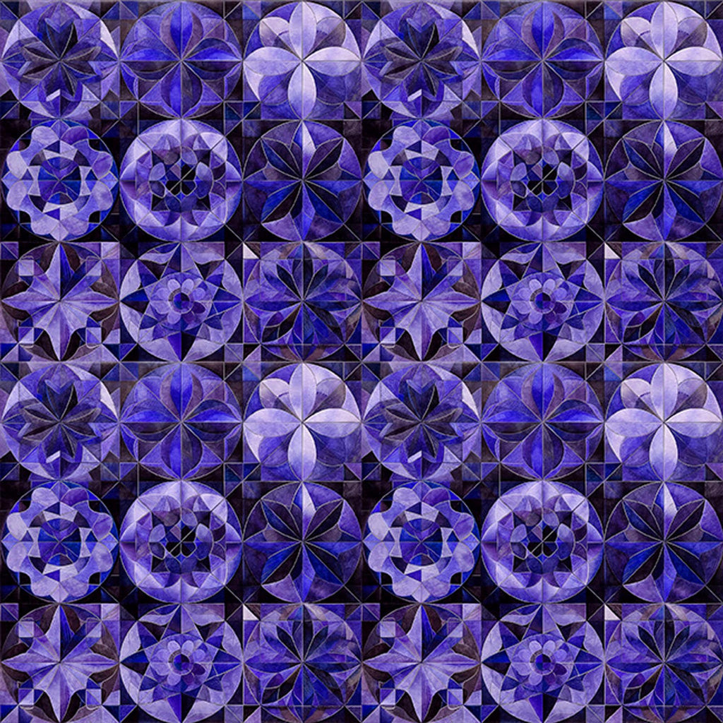 Solstice Kaleidoscope Packed Circles 31232 Violet V - QT Fabrics - Geometric Abstract Stained - Quilting Cotton Fabric
