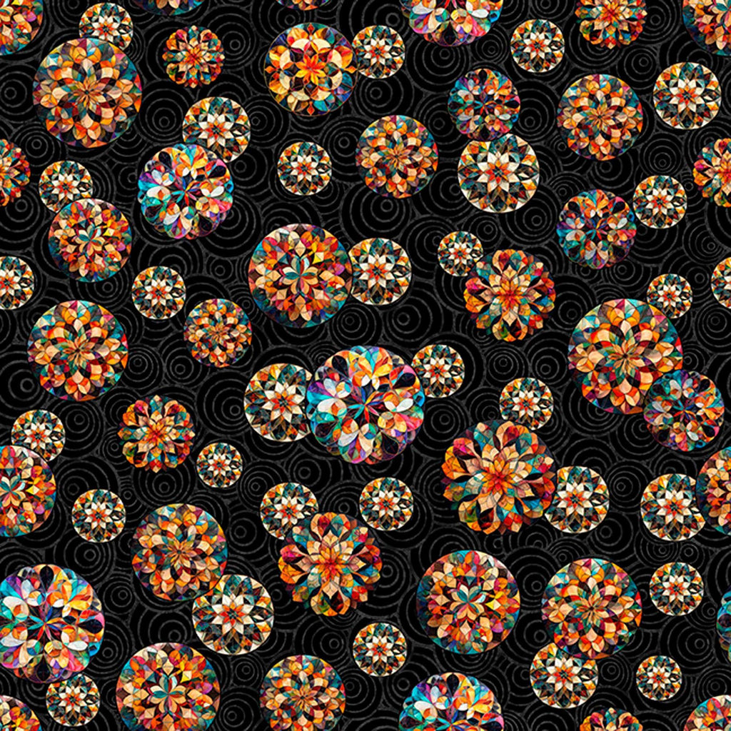 Solstice Kaleidoscope Tossed Circles Black by QT Fabrics 2600 31230 J