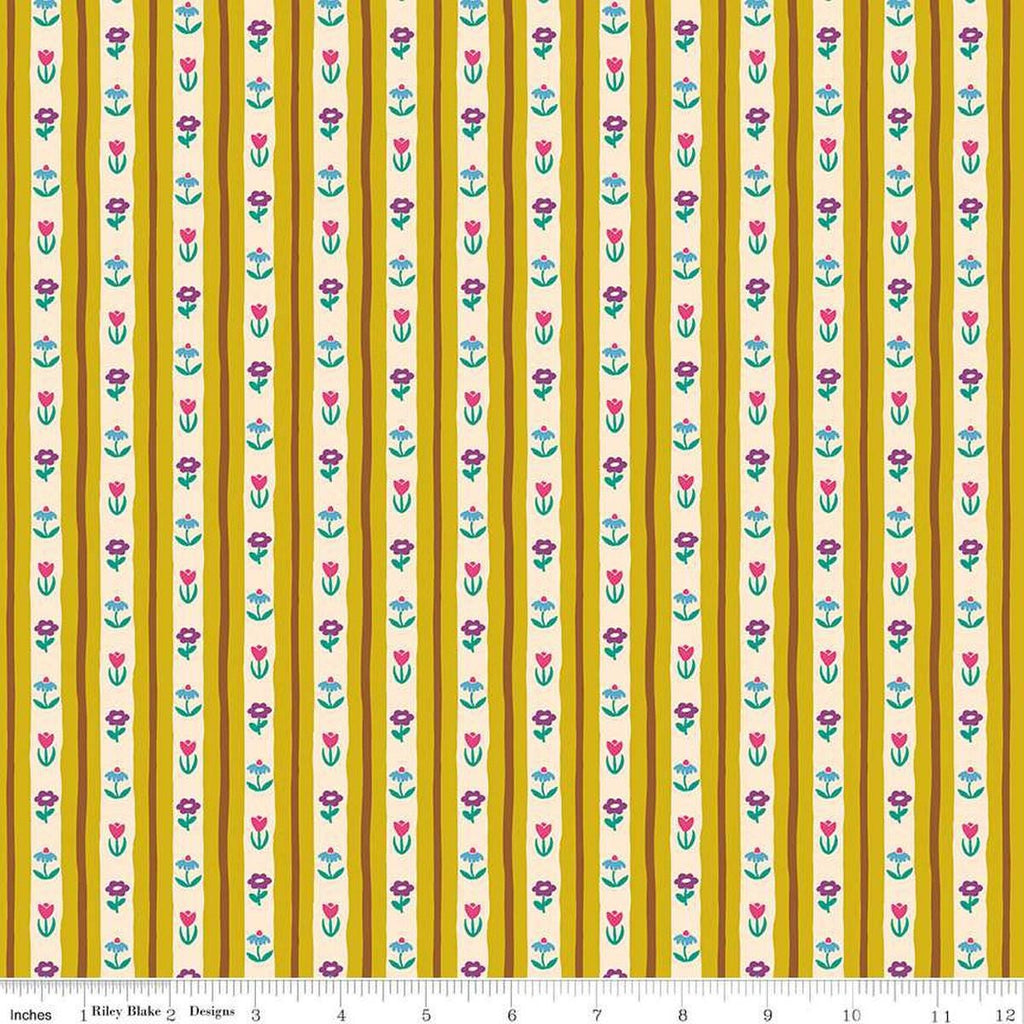 SALE The Genesis of a Journey Bavarian C16934 Curry - Riley Blake Designs - Striped Floral Flowers - Quilting Cotton Fabric