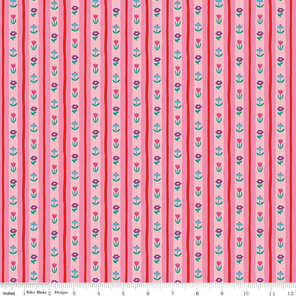 SALE The Genesis of a Journey Bavarian C16934 Rose - Riley Blake Designs - Striped Floral Flowers - Quilting Cotton Fabric