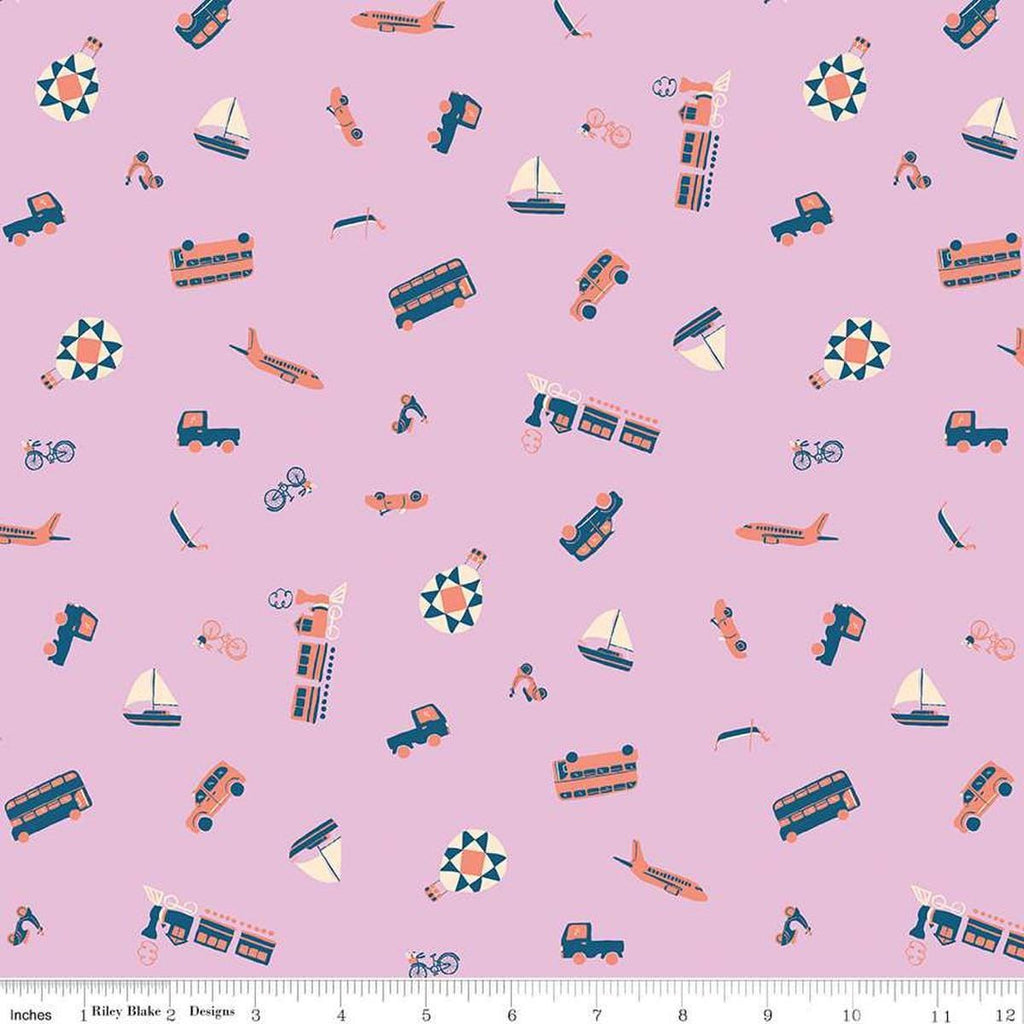 SALE The Genesis of a Journey Modes of Travel C16932 Wisteria - Riley Blake Designs - Boat Car Train - Quilting Cotton Fabric