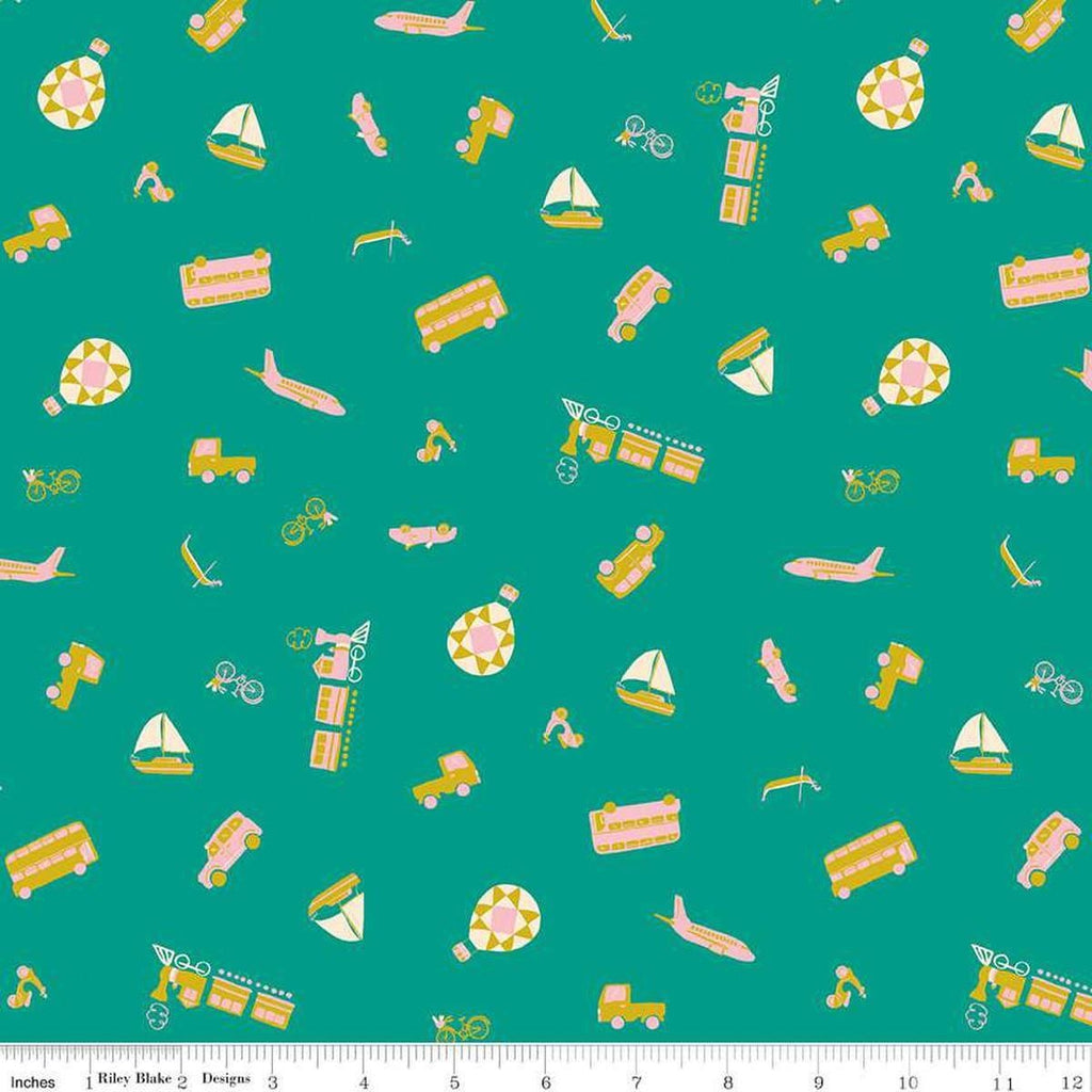 The Genesis of a Journey Modes of Travel Teal by Riley Blake Designs C16932-TEAL