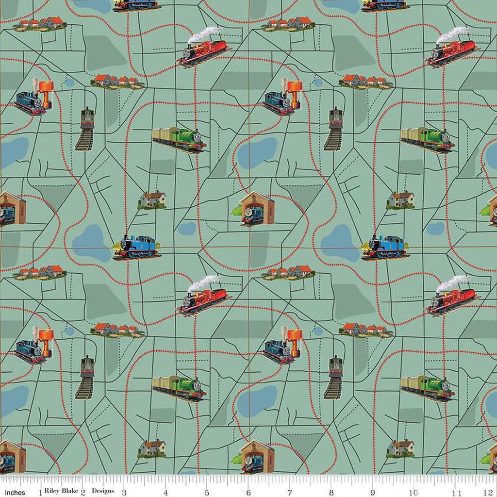 Thomas & Friends™ 80th Anniversary Map Green by Riley Blake Designs CD17012-GREEN