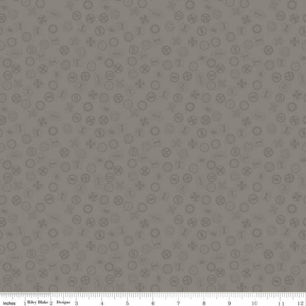 Thomas & Friends™ 80th Anniversary Railroad Signs Gray by Riley Blake Designs C17014-GRAY