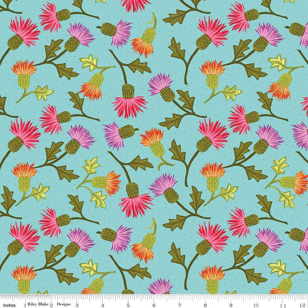 Zinnias Thistles Aqua by Riley Blake Designs CD16692-AQUA