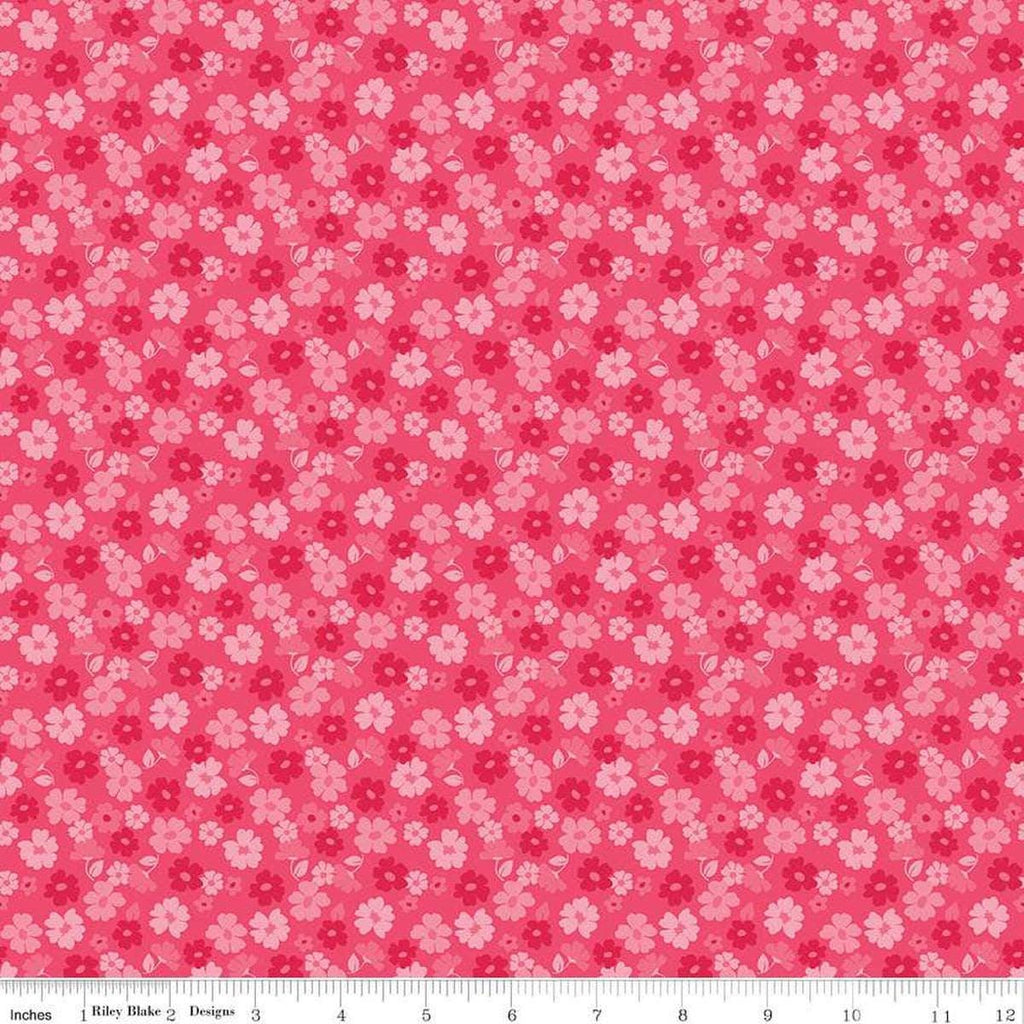 SALE Zinnias Tossed Flowers C16695 Hot Pink - Riley Blake Designs - Floral Blossoms Petals Tonal - Quilting Cotton Fabric