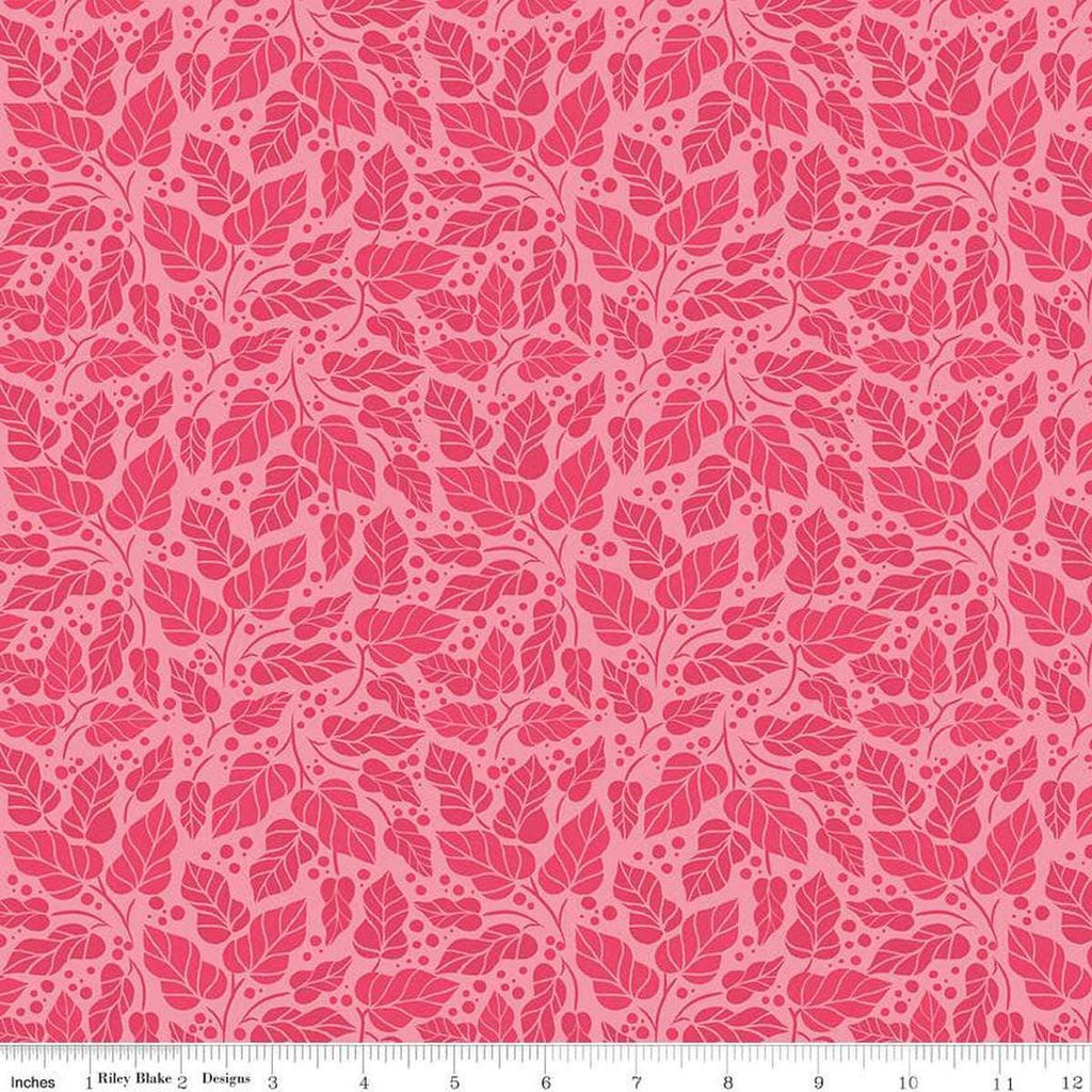 SALE Zinnias Zinnia Leaves C16694 Pink - Riley Blake Designs - Leaf Plants Nature Dots Spots - Quilting Cotton Fabric