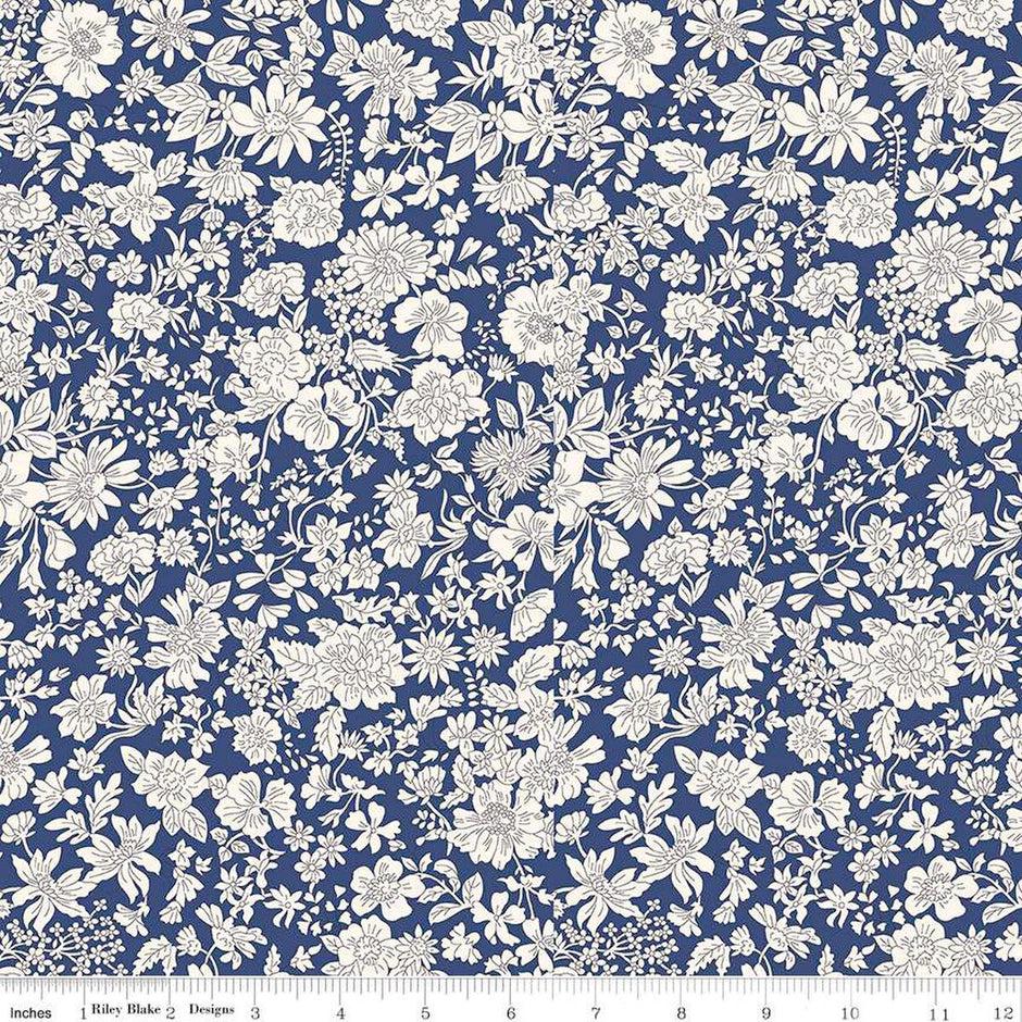 3 yard cut - Liberty Wide-Width Emily Blossom Sapphire A WIDE BACK 0166W7414A - Riley Blake - 107/108" Wide - Quilting Cotton Fabric