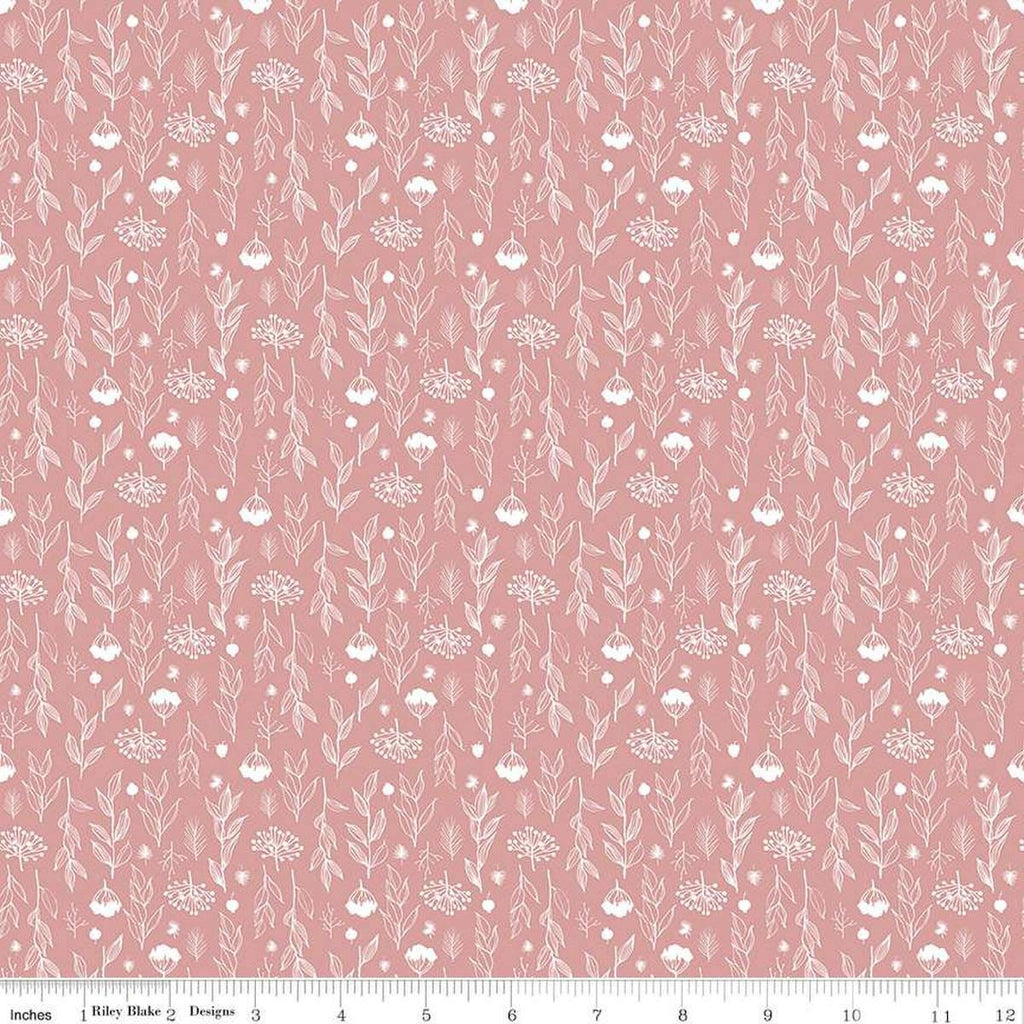 SALE Evening on the Prairie Silhouette Floral C16748 Pink - Riley Blake Designs - Nature Plants - Quilting Cotton Fabric