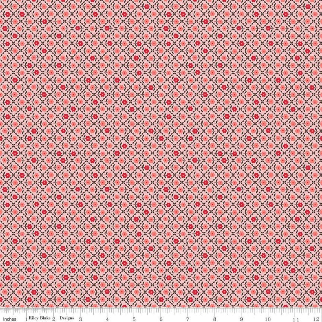 Flea Market Needlepoint C10224 Pink - Riley Blake Designs - Geometric Diagonal Grid Floral - Lori Holt - Quilting Cotton Fabric