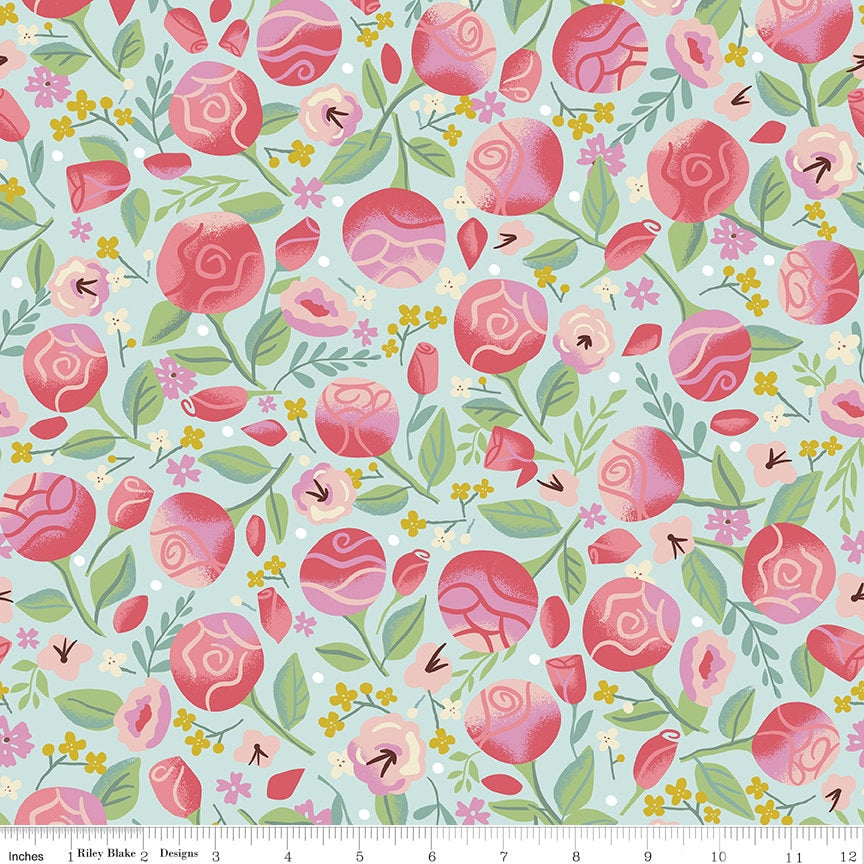 11" End of Bolt - Beauty and the Beast Floral Light Blue - Riley Blake Designs - Fairy Tale Flowers Leaves - Quilting Cotton Fabric