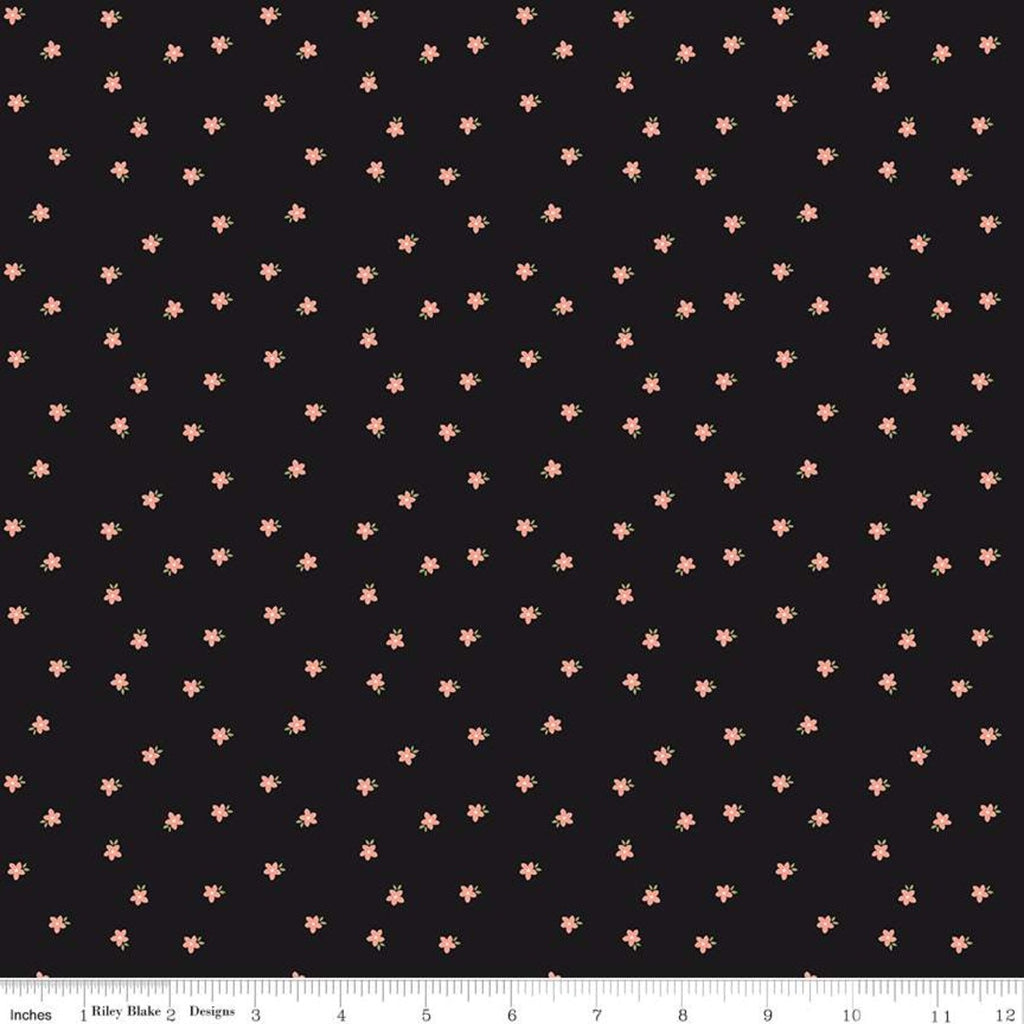11" End of Bolt - Modern Farmhouse Mini Floral Black SPARKLE - Riley Blake Designs - Coral Rose Gold Metallic - Quilting Cotton Fabric