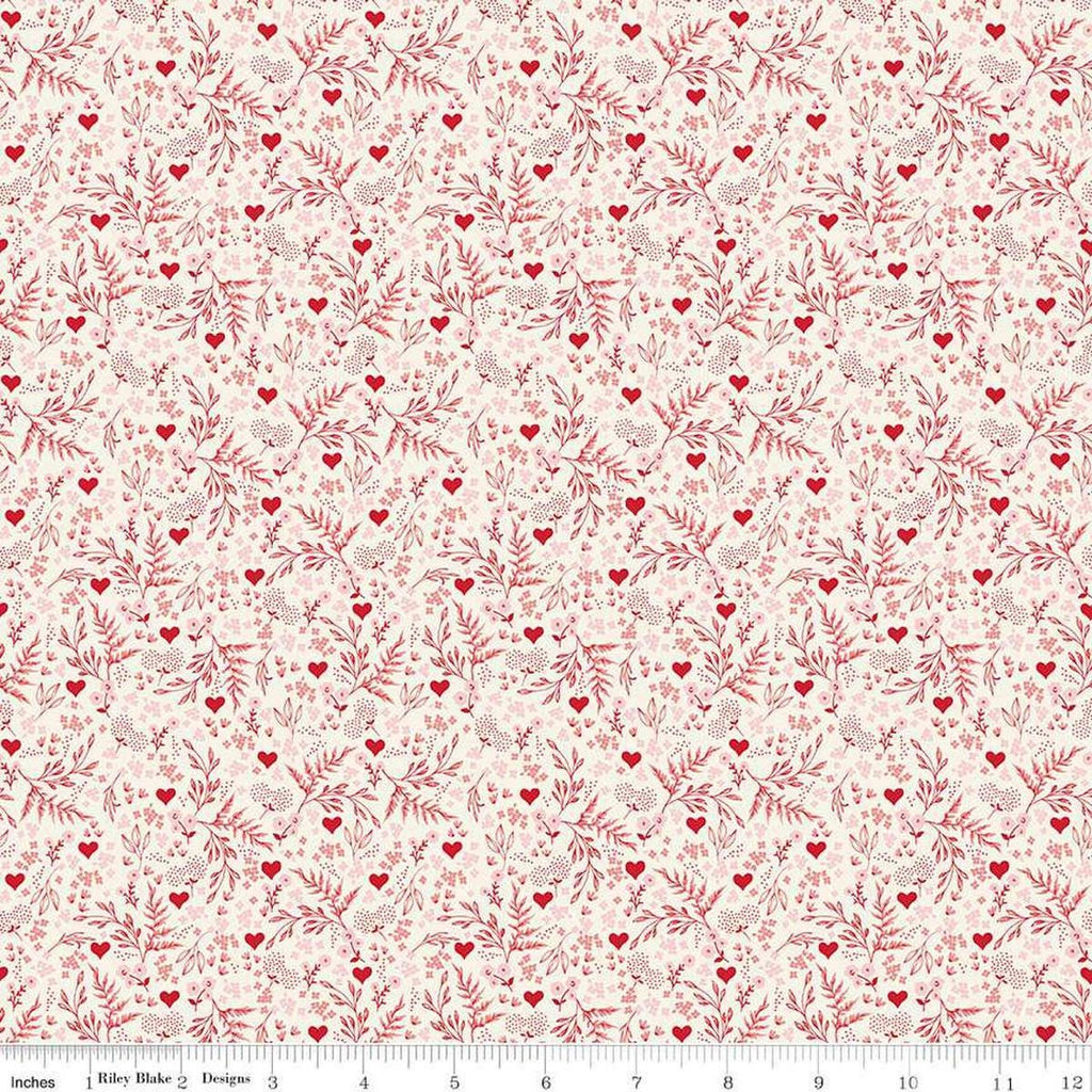SALE Letters to Cupid Ditsy Floral C16984 Cream - Riley Blake Designs - Flowers Blossoms Leaf Leaves - Quilting Cotton Fabric