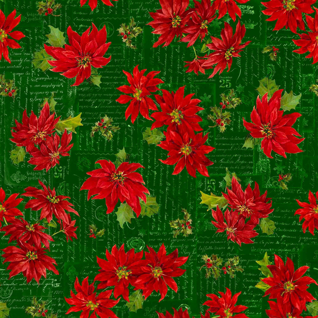 Poinsettia Greetings Poinsettia Toss Forest F by QT Fabrics 2600 31083 F
