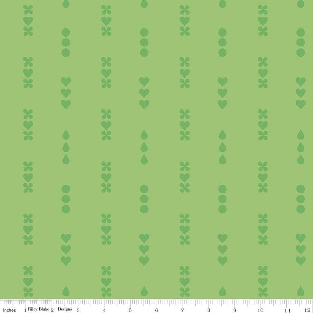 CLEARANCE Dream Lullaby C10773 Green - Riley Blake Designs - Tone-on-Tone Flowers Hearts Circles - Quilting Cotton