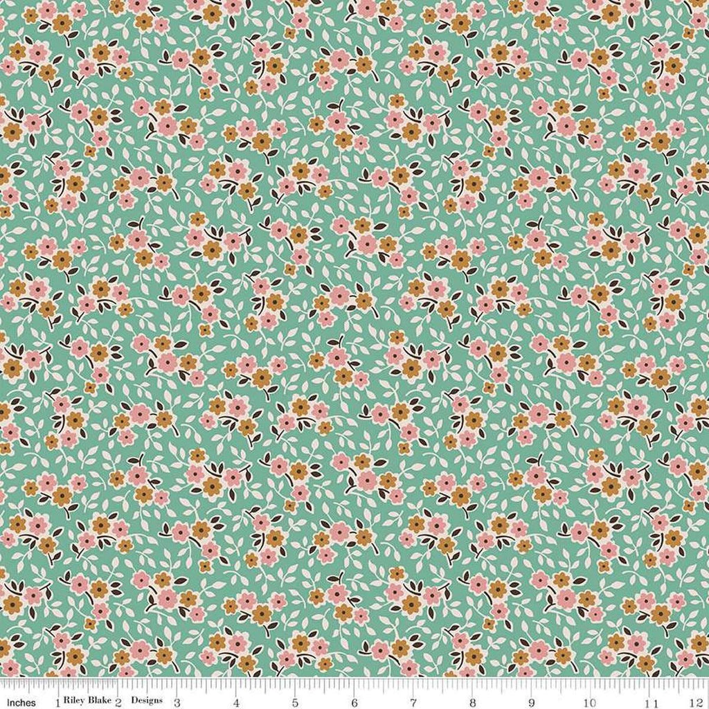 SALE Gentler Times Cherish C16473 Sea Glass - Riley Blake Designs - Lori Holt - Sprigs Flowers Leaves Floral - Quilting Cotton Fabric