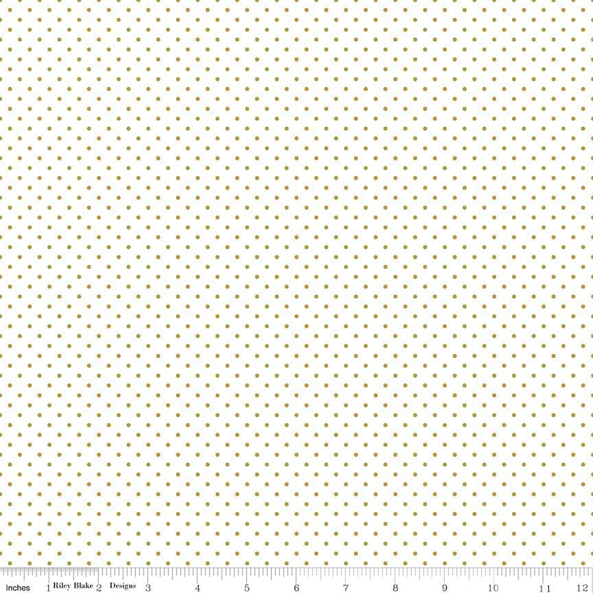 SALE Gold SPARKLE Swiss Dot on White by Riley Blake Designs - Polka Dots Metallic - Quilting Cotton Fabric