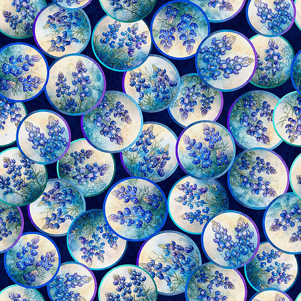 Grab Bag Season 3 Bluebonnets Vignettes 31457 Navy N - QT Fabrics - Token Circle Floral Flowers - Quilting Cotton Fabric