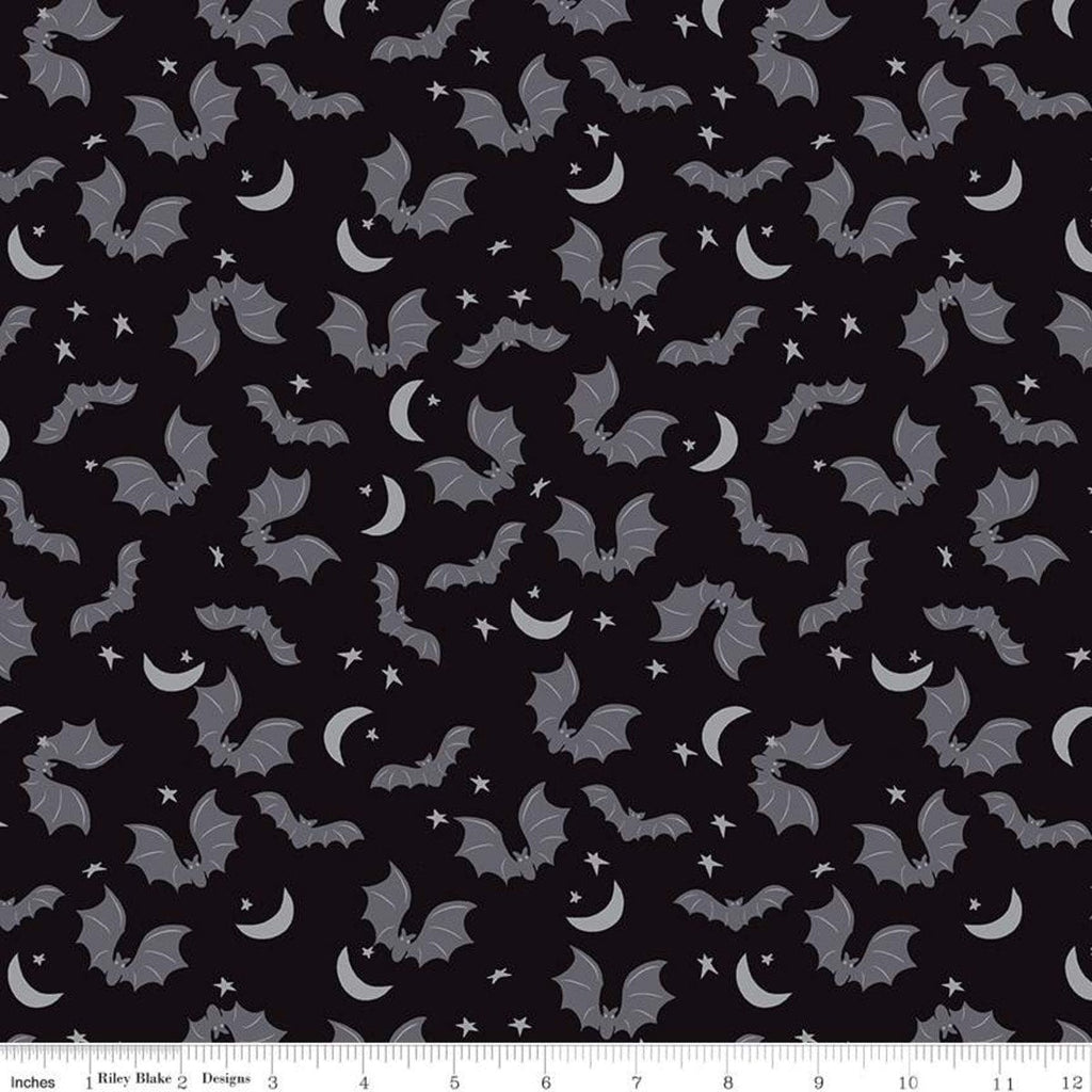 Spooky Hallow Bats Black SPARKLE By Riley Blake Designs SC10572-BLACK