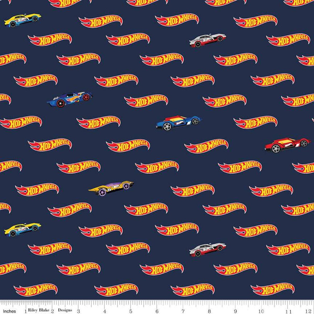 SALE Hot Wheels Logo Navy - Riley Blake Designs - Die-Cast Toy Race Cars Blue - Quilting Cotton Fabric - LIcensed Product