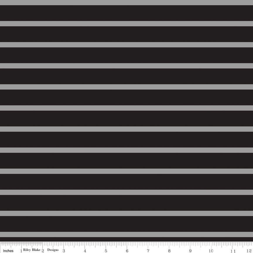 18" End of Bolt - SALE Black and Gray 1/4" Quarter Inch Stripe by Riley Blake Designs - Jersey KNIT cotton stretch fabric