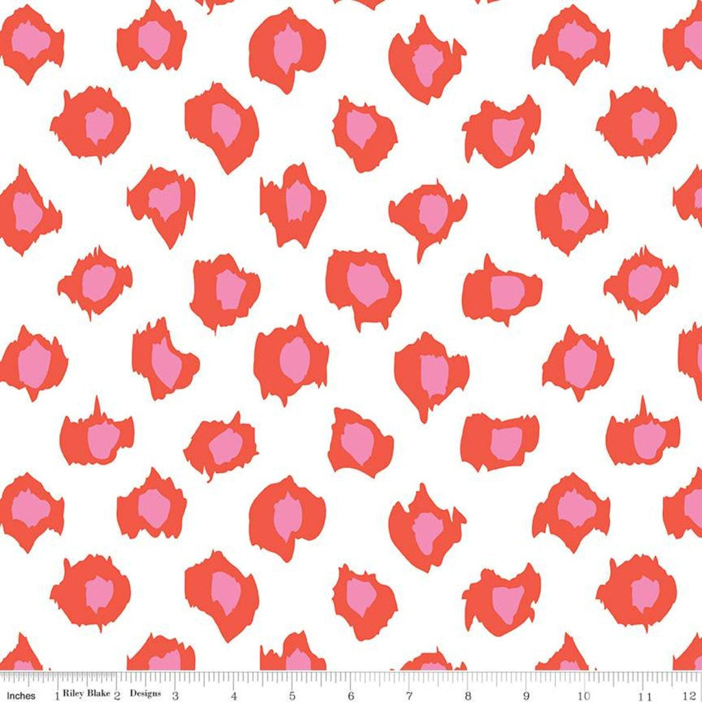 CLEARANCE Leopard K10430 White KNiT - Riley Blake Designs - Leopard Spots Pink Orange - Jersey Knit cotton stretch fabric