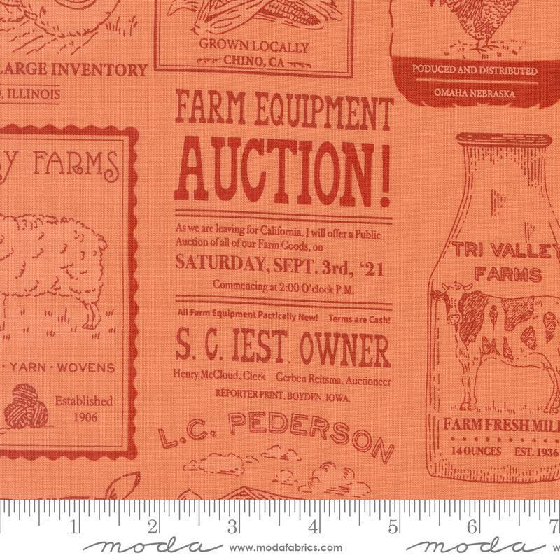 SALE Farmstead Advertisements 20902 Coral - Moda Fabrics - Vintage Farm Ads Newspaper - Quilting Cotton Fabric