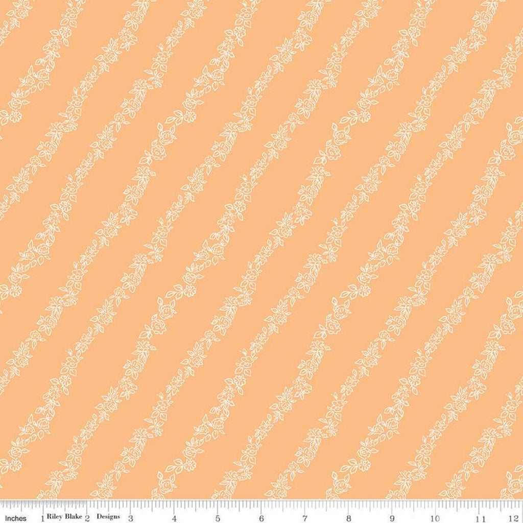 Fat Quarter End of Bolt - CLEARANCE Sew Kewpie Vines C10544 Daisy - Riley Blake Designs - Floral Flowers Vintage Orange - Quilting Cotton