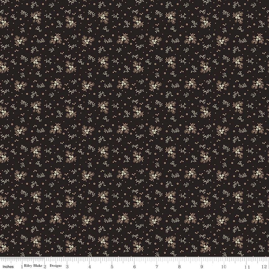 Fat Quarter End of Bolt - SALE Bountiful Autumn Ditsy C10853 Black - Riley Blake - Reproduction Print Flowers Leaves Dots - Quilting Cotton