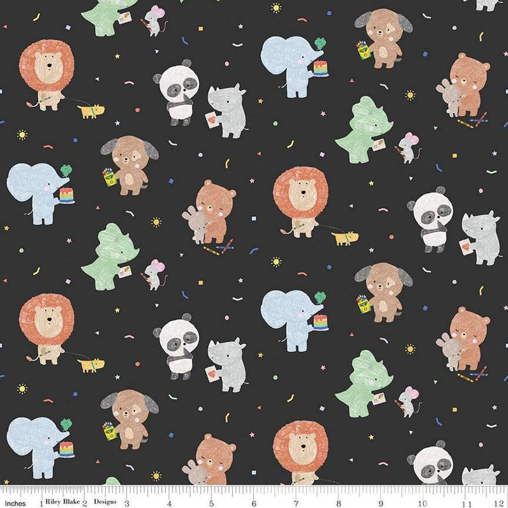 New Box of Crayons Main C16510 Black - Riley Blake Designs - Crayon Drawn Animals Confetti - Quilting Cotton Fabric - Licensed Product