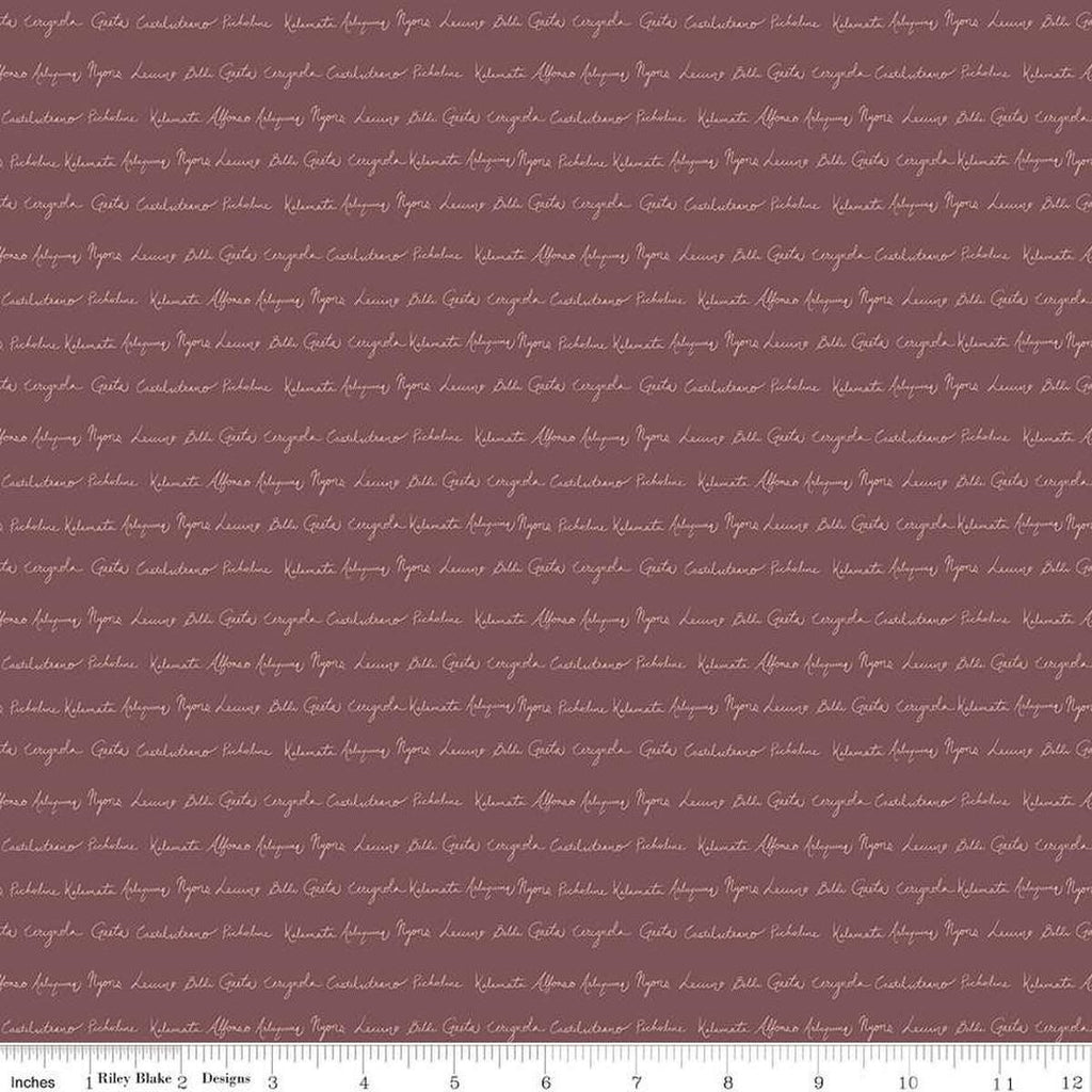 SALE Olive Grove Script C16636 Plum - Riley Blake Designs - Handwriting Cursive Variety Text - Quilting Cotton Fabric