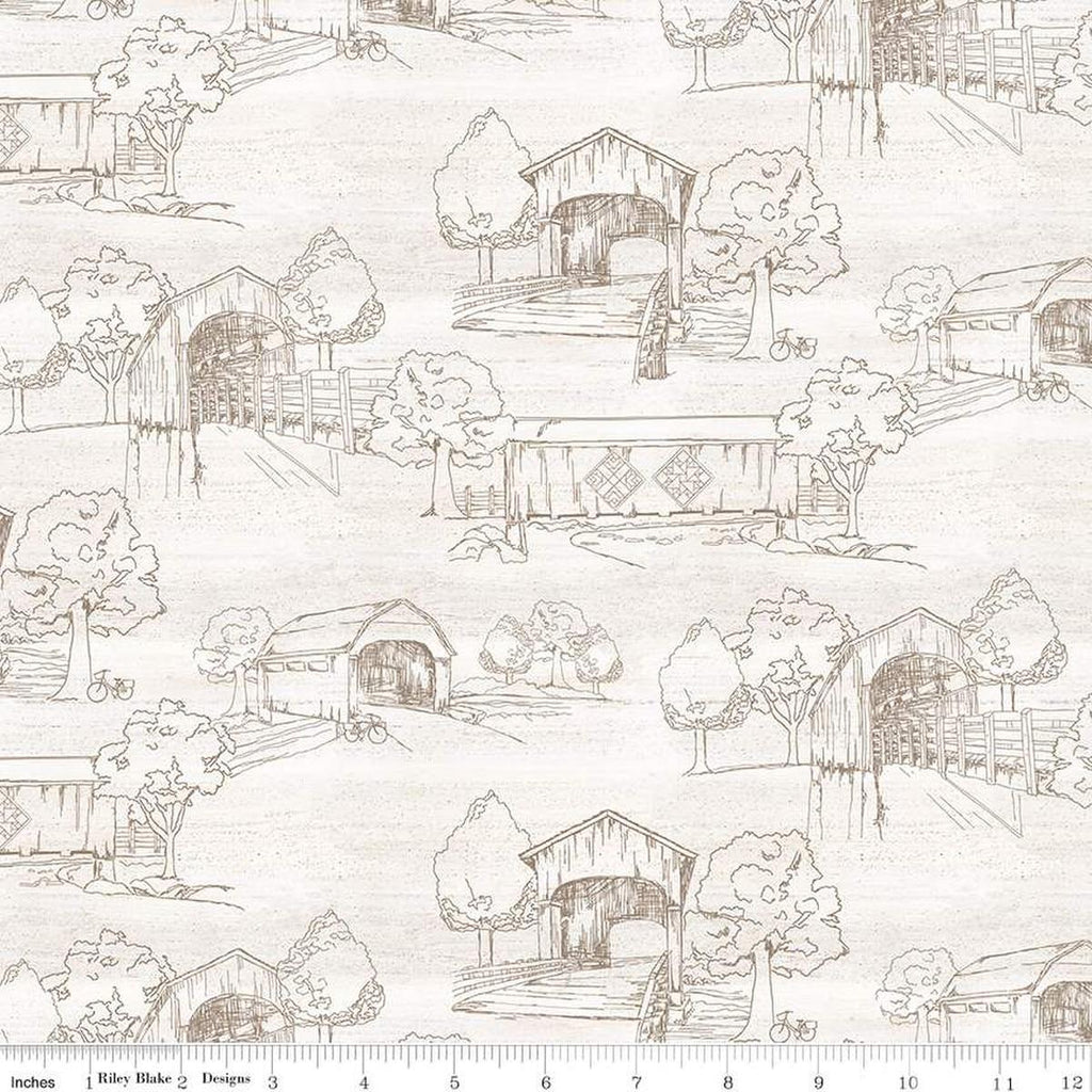Covered Bridges in Spring Toile White WIDE BACK by Riley Blake Designs WB15828-WHITE