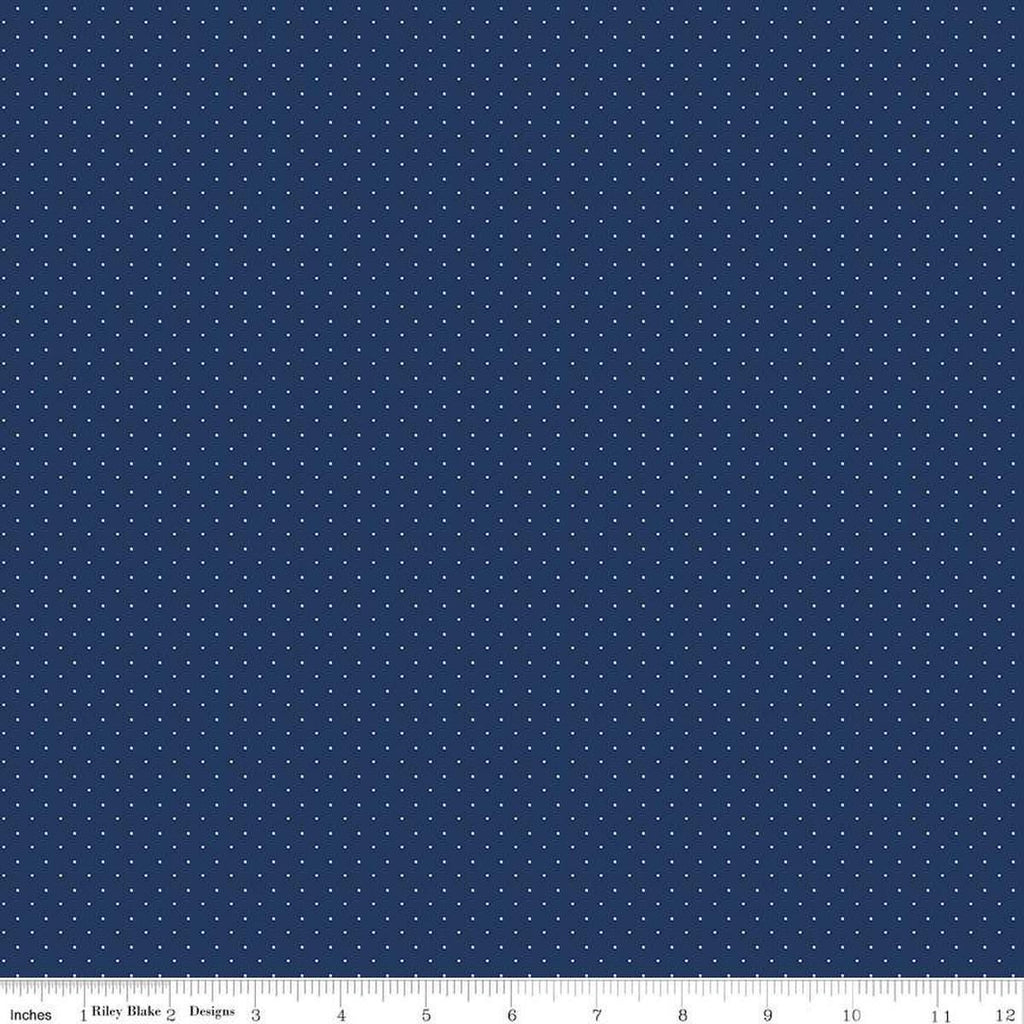 SALE American Jane Pindots C840 Navy - Riley Blake Designs - PRINTED Tiny Swiss Dots - Quilting Cotton Fabric