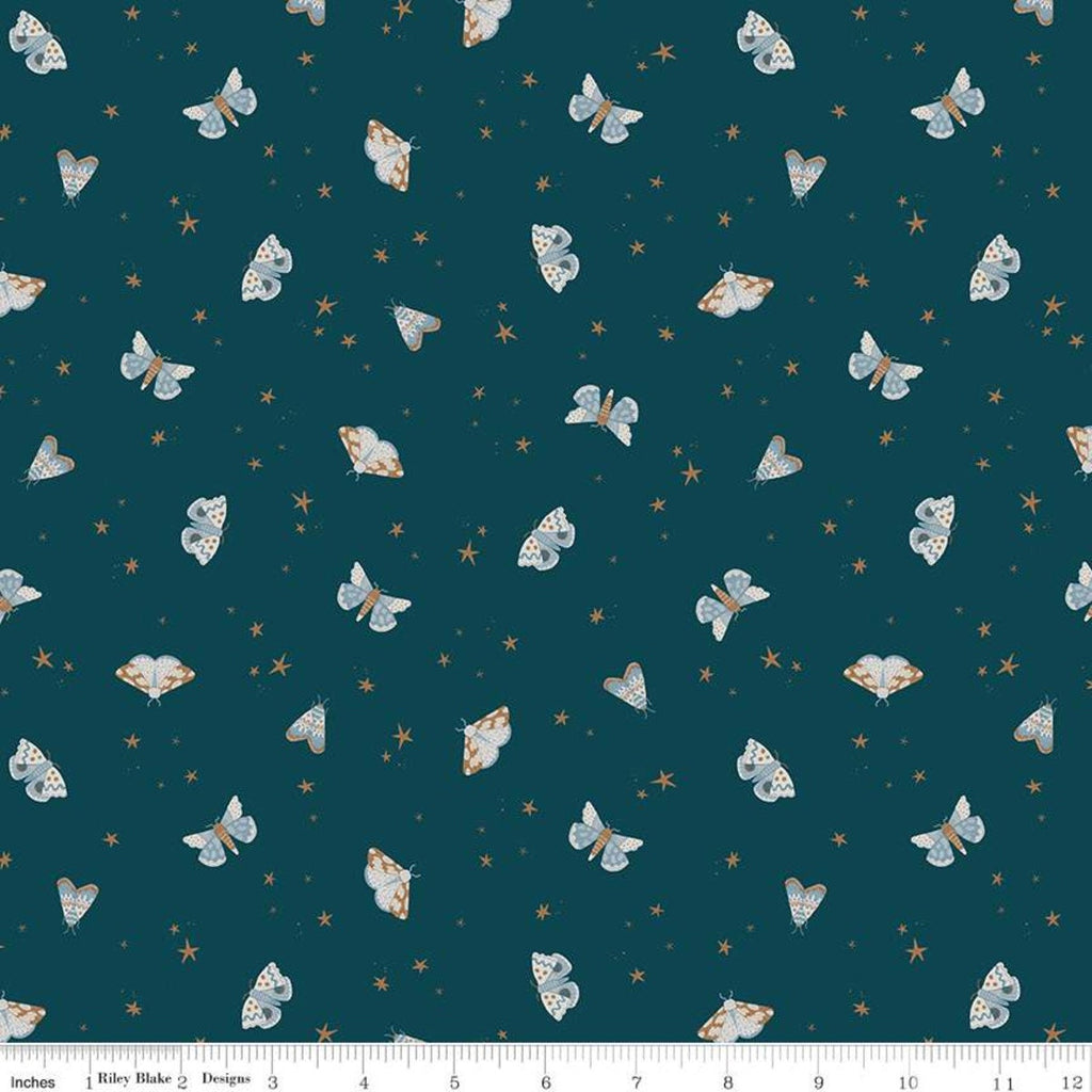SALE Camp Woodland Moths C10462 Navy - Riley Blake Designs - Moths Stars Blue - Quilting Cotton Fabric