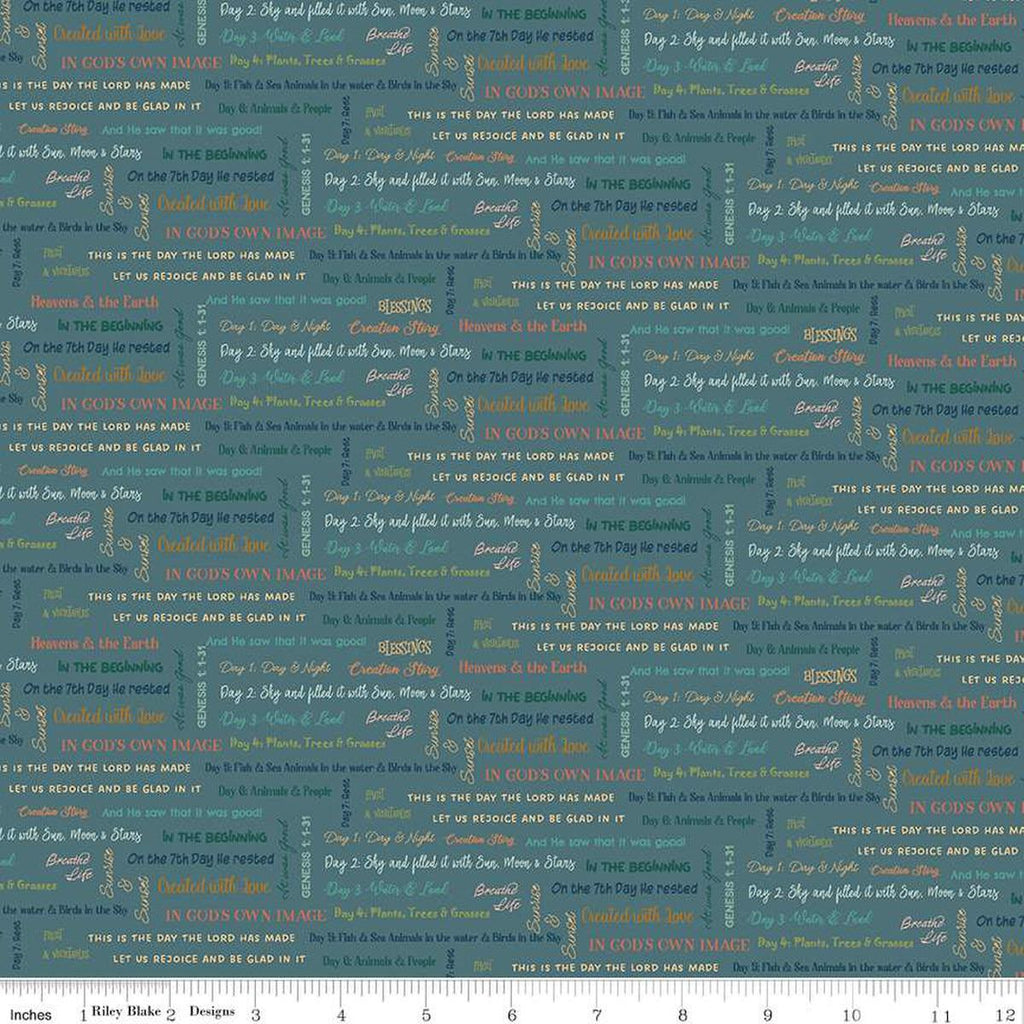 SALE Created with Love It Is Written C15974 Ocean - Riley Blake Designs - Text Words Creation Earth - Quilting Cotton Fabric