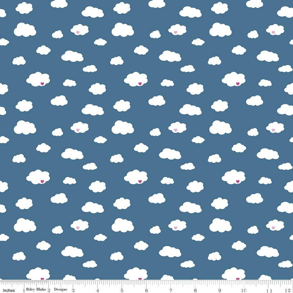 Fat Quarter End of Bolt - SALE Dream Drift C10771 Blue - Riley Blake Designs - White Clouds Pink Hearts - Quilting Cotton Fabric