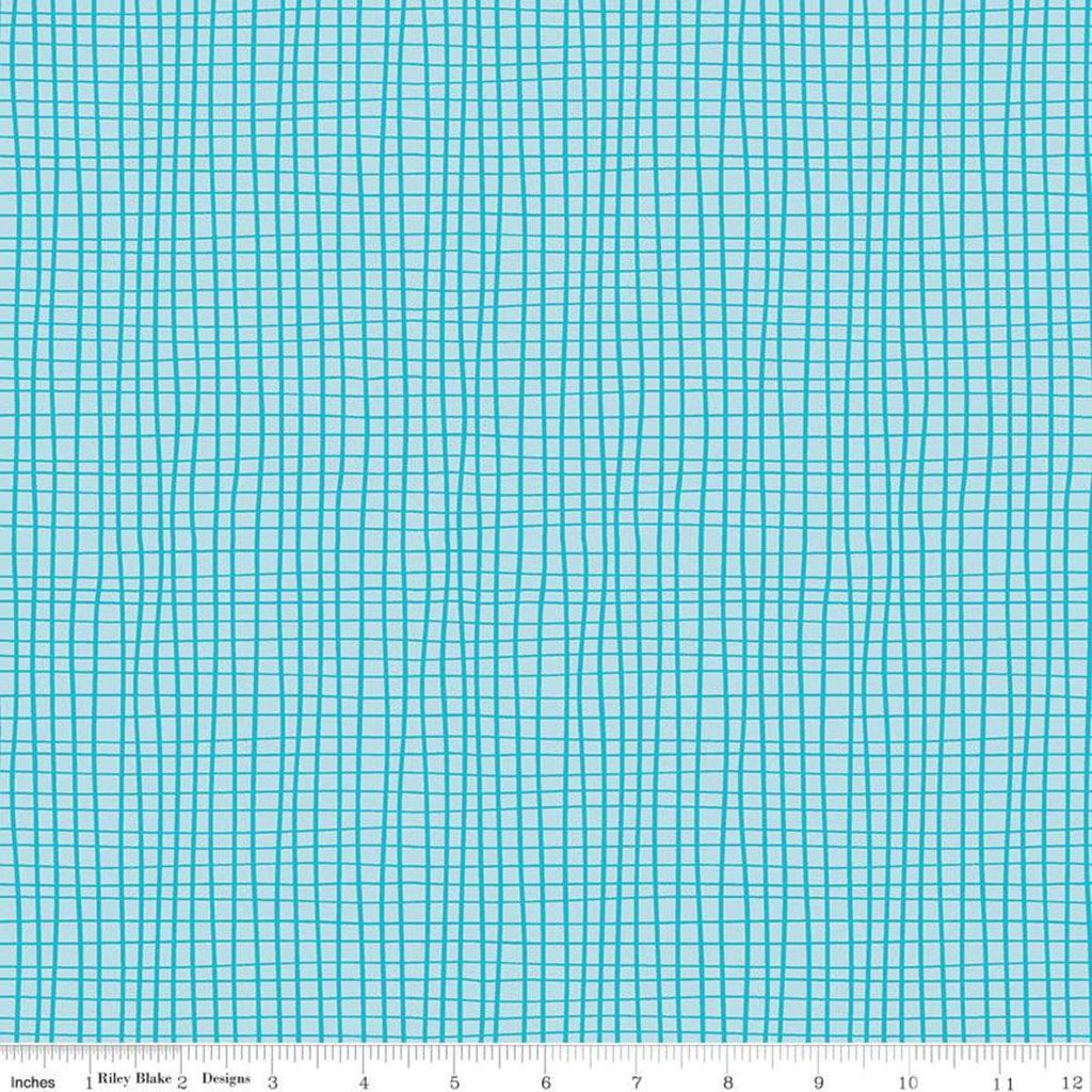 Fat Quarter End of Bolt-SALE Grl Pwr Grid C10655 Aqua-Riley Blake Designs -Girl Power Geometric Irregular Grid Blue - Quilting Cotton Fabric