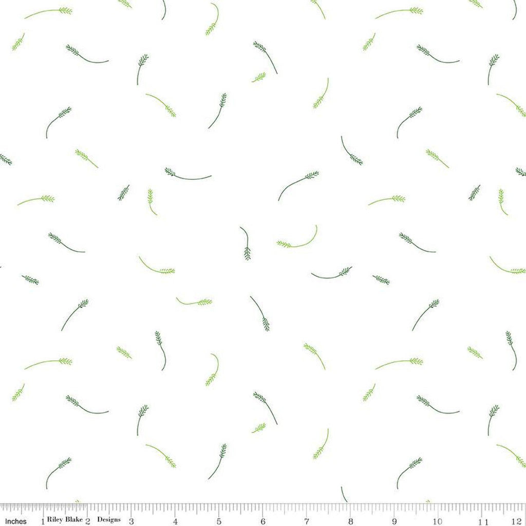 Fat Quarter End of Bolt - SALE Hush Hush 3 Tiny Twigs C14070 by Riley Blake Designs - Leaves Leaf Sprigs Low-Volume - Quilting Cotton Fabric