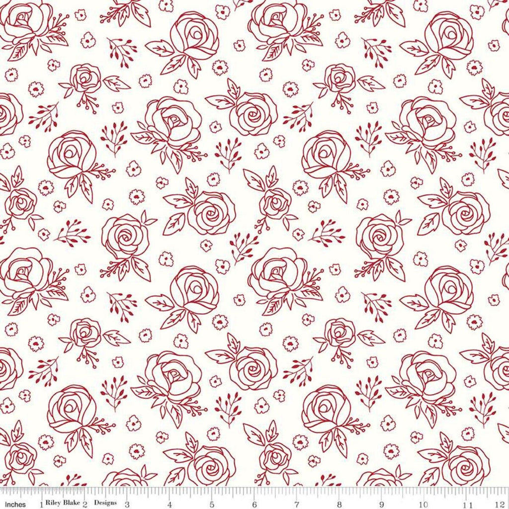 Fat Quarter End of Bolt - SALE Red Hot Roses C11683 Cream - Riley Blake Designs - Floral Outlined Flowers - Quilting Cotton Fabric
