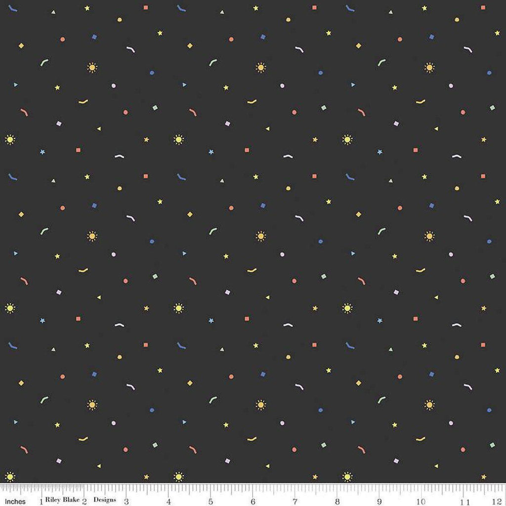 SALE New Box of Crayons Confetti C16514 Black - Riley Blake Designs - Scattered Lines Shapes - Quilting Cotton Fabric - Licensed Product