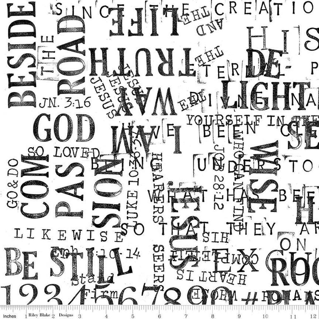 SALE Sewing Seeds III Parable Stamps C15691 White - Riley Blake Designs - Bible Biblical Text Words Type - Quilting Cotton Fabric