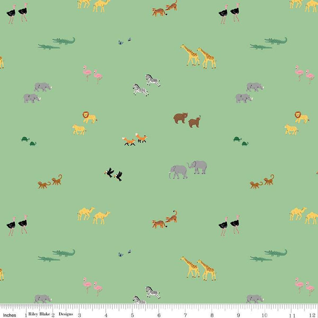 SALE Two by Two Perfect Pairs C16682 Green by Riley Blake Designs - Animals Lions Giraffes Elephants - Quilting Cotton Fabric