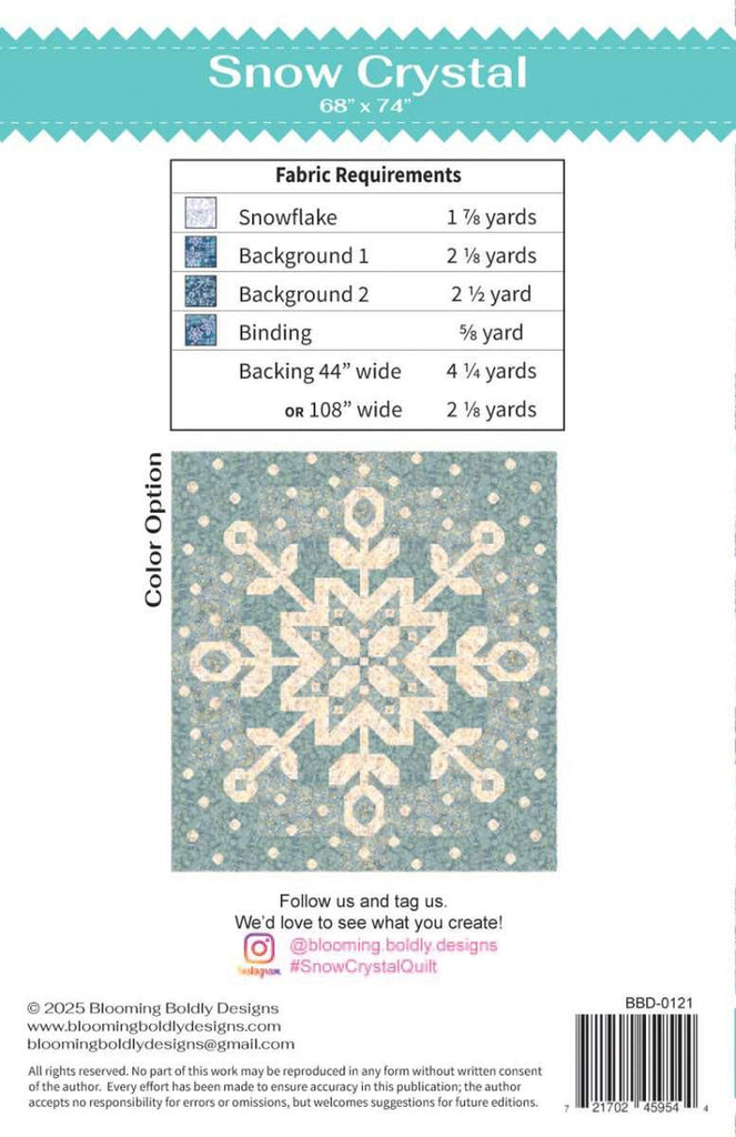 Blooming Boldy Designs Snow Crystal Quilt PATTERN P006-SNOWCRYSTAL