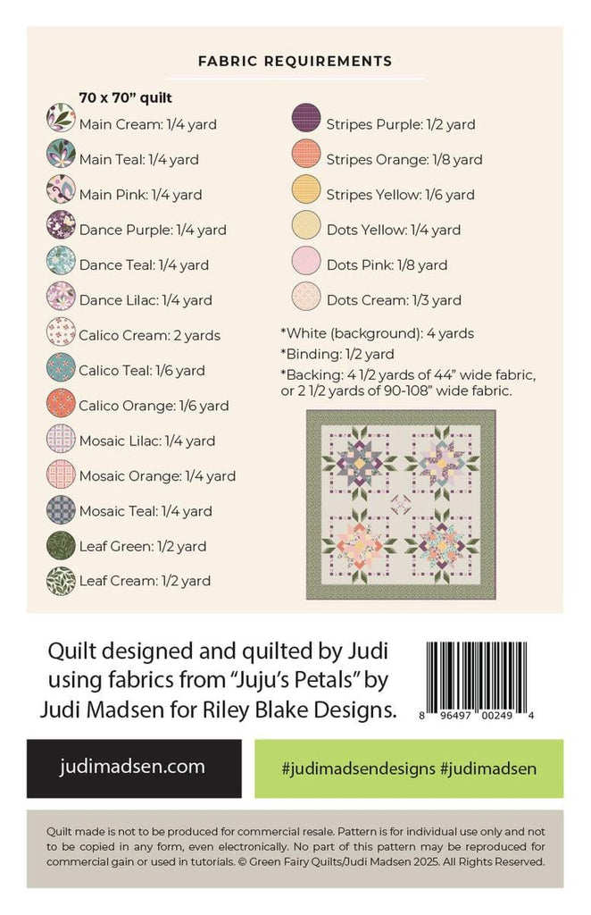 INSTRUCTION ONLY pattern to construct the Juju's Petals quilt.