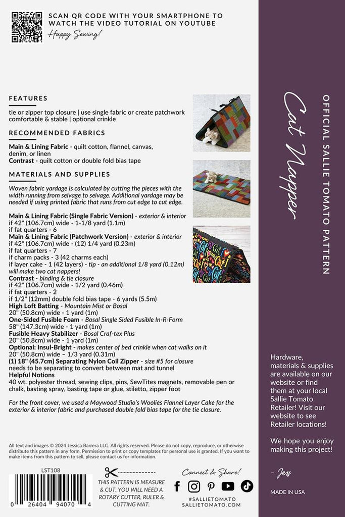 SALE Cat Napper PATTERN P210 by Sallie Tomato - Riley Blake Designs - INSTRUCTIONS Only - 2-in-1 Pattern - Precut Friendly - Intermediate