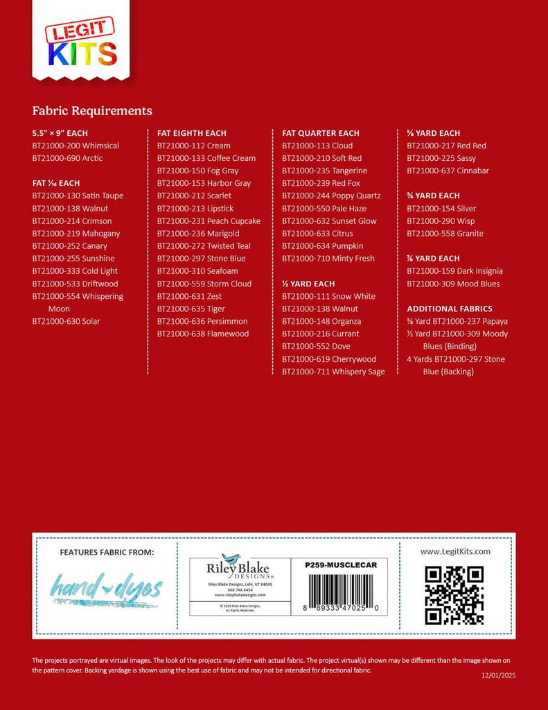 SALE The Muscle Quilt Pattern P259 by Legit Kits P259-MUSCLECAR - Riley Blake Designs- INSTRUCTIONS Only - Pieced Foundation Paper Piecing