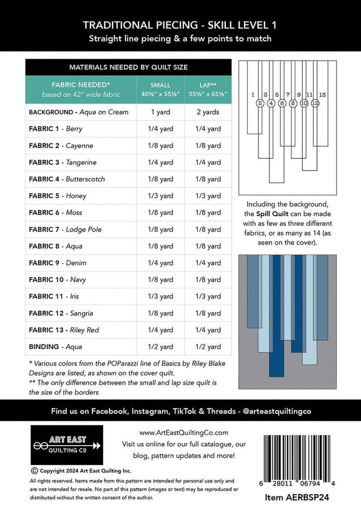 SALE The Spill Quilt PATTERN P203 by Art East Quilting Company - Riley Blake - INSTRUCTIONS Only - Multiple Sizes - Beginner