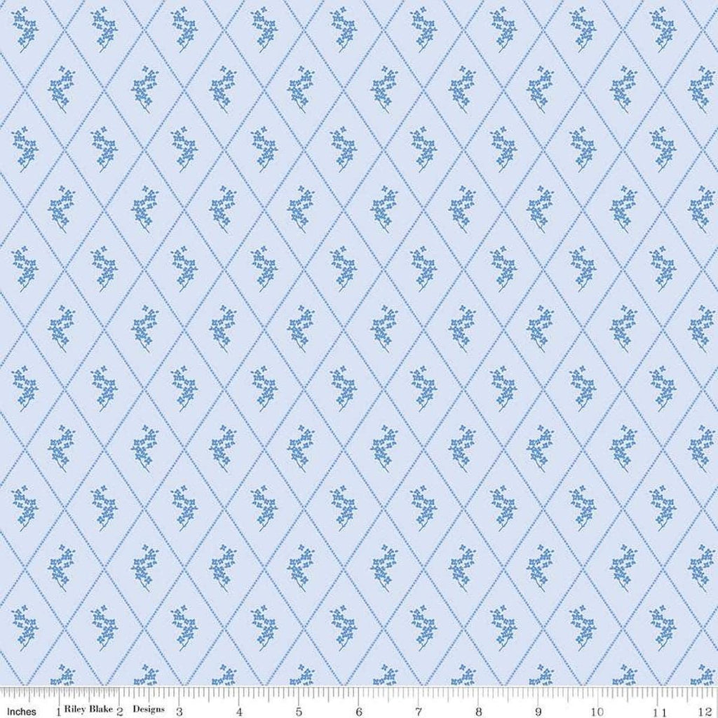Penelope Diamonds C16642 Sky - Riley Blake Designs - Geometric Floral Flowers Blossoms - Quilting Cotton Fabric