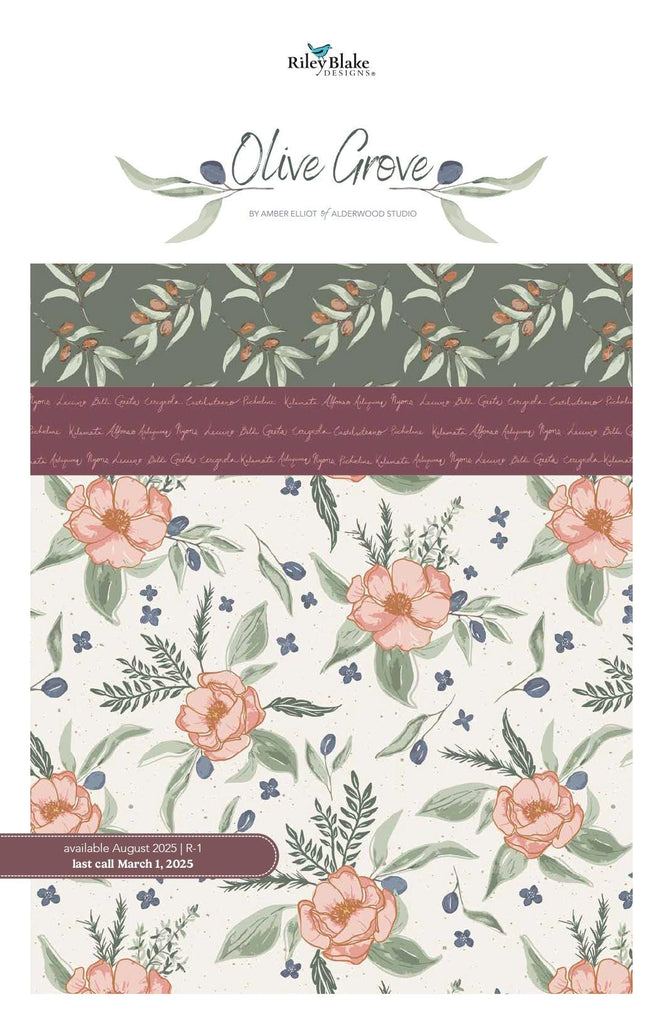 SALE Olive Grove 2.5 Inch Rolie Polie Jelly Roll 40 pieces - Riley Blake - Precut - Plants Nature - Quilting Cotton Fabric