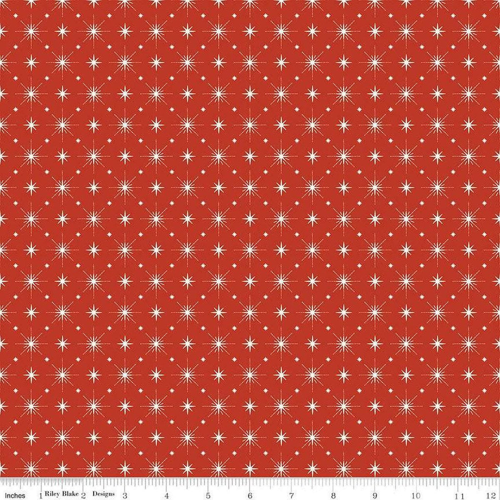 12" End of Bolt - Christmas is In Town Stars C14747 Red - Riley Blake Designs - Array Sparkles - Quilting Cotton Fabric
